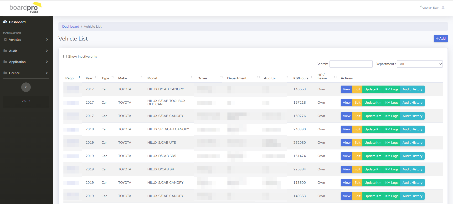 – Record vehicle details, lease details, etag and fuel card information, current kilometers.